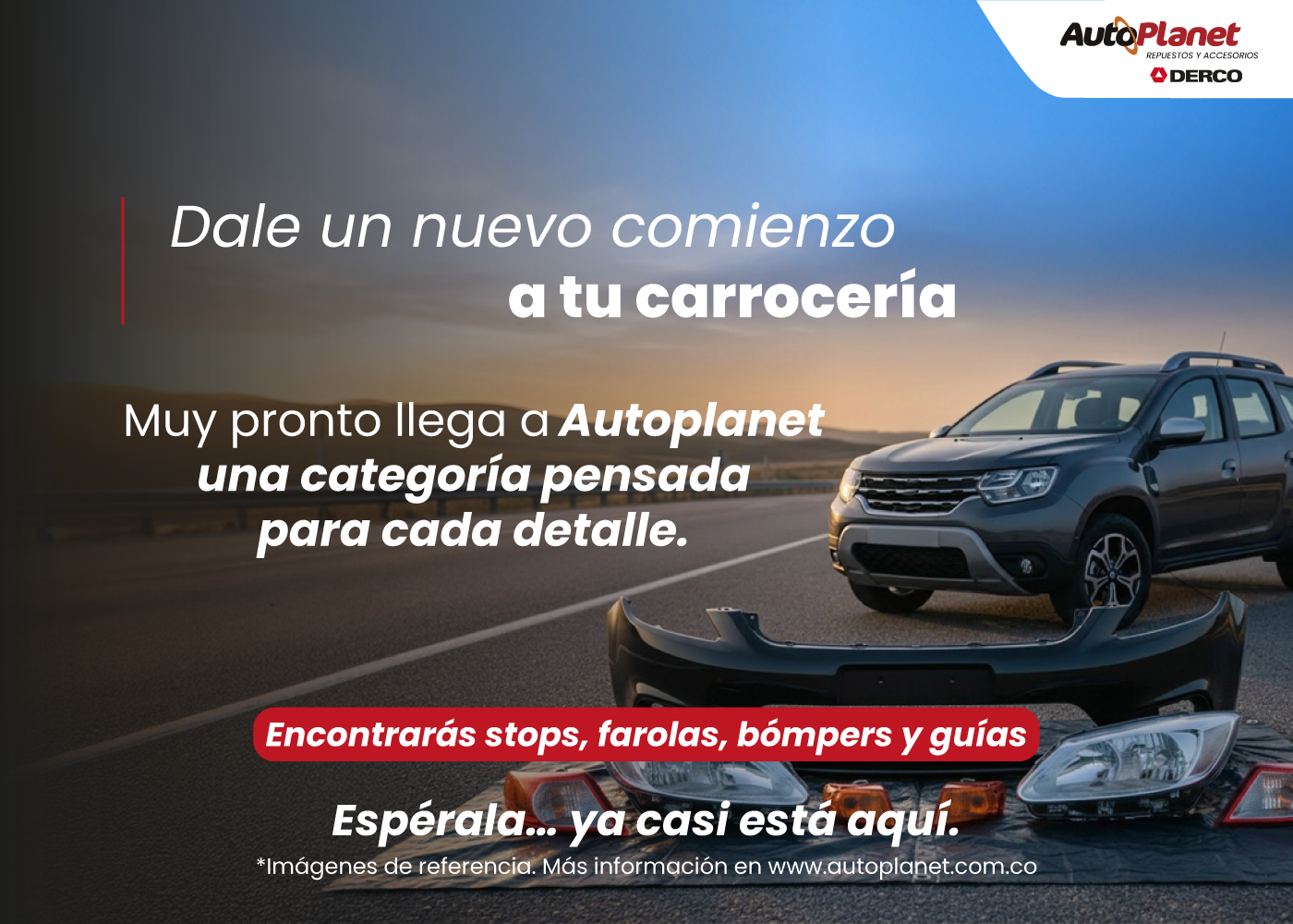 DERCO Colombia presenta AUTOPLANET el ecommerce especializado en la venta de productos, accesorios y repuestos para vehículos. En nuestra tienda online podrás comprar llantas, baterías, productos de limpieza, accesorios de seguridad e iluminación, kit de seguridad, aceites y lubricantes, amortiguadores y mucho más, de las mejores marcas y a precios competitivos. Sé parte de la familia DERCO y disfruta de nuestro envío a domicilio en toda Colombia.