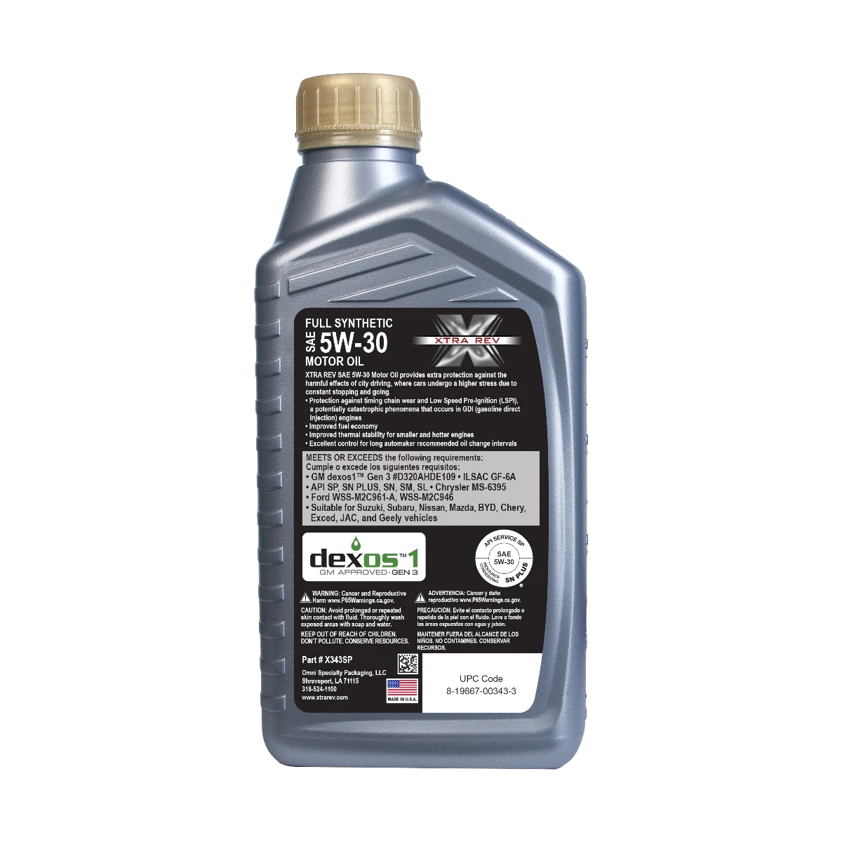 Aceite XTRA-REV 5W-30 Sintético – Cuarto