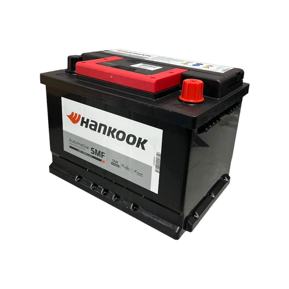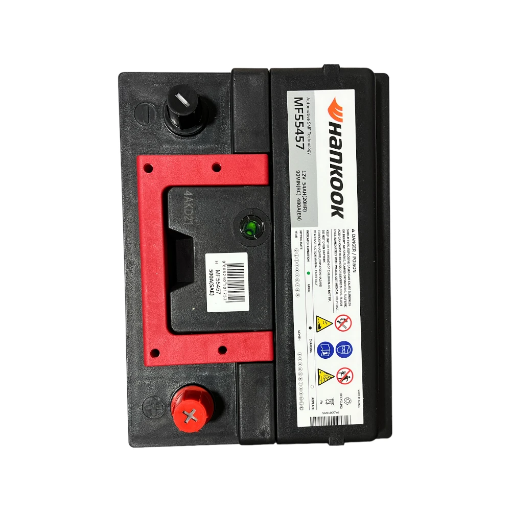Batería Hankook tipo MF caja 42-700 para automóvil modelo MF55457 54AH 720CA. Borne positivo derecho. Peso: 13.7 kg, Dimensiones 24.2 × 17.4 × 17.5 cm, capacidad – Ampere Hora: 54, arranque en frío: 720. Tecnología X-FRAME, fabricadas con los más altos estándares de calidad ISO. Mayor tiempo de duración, para un mejor rendimiento. 100% libre de mantención. Origen: Corea, se estableció en el año 1944, distribuida en más de 130 países en todo el mundo.