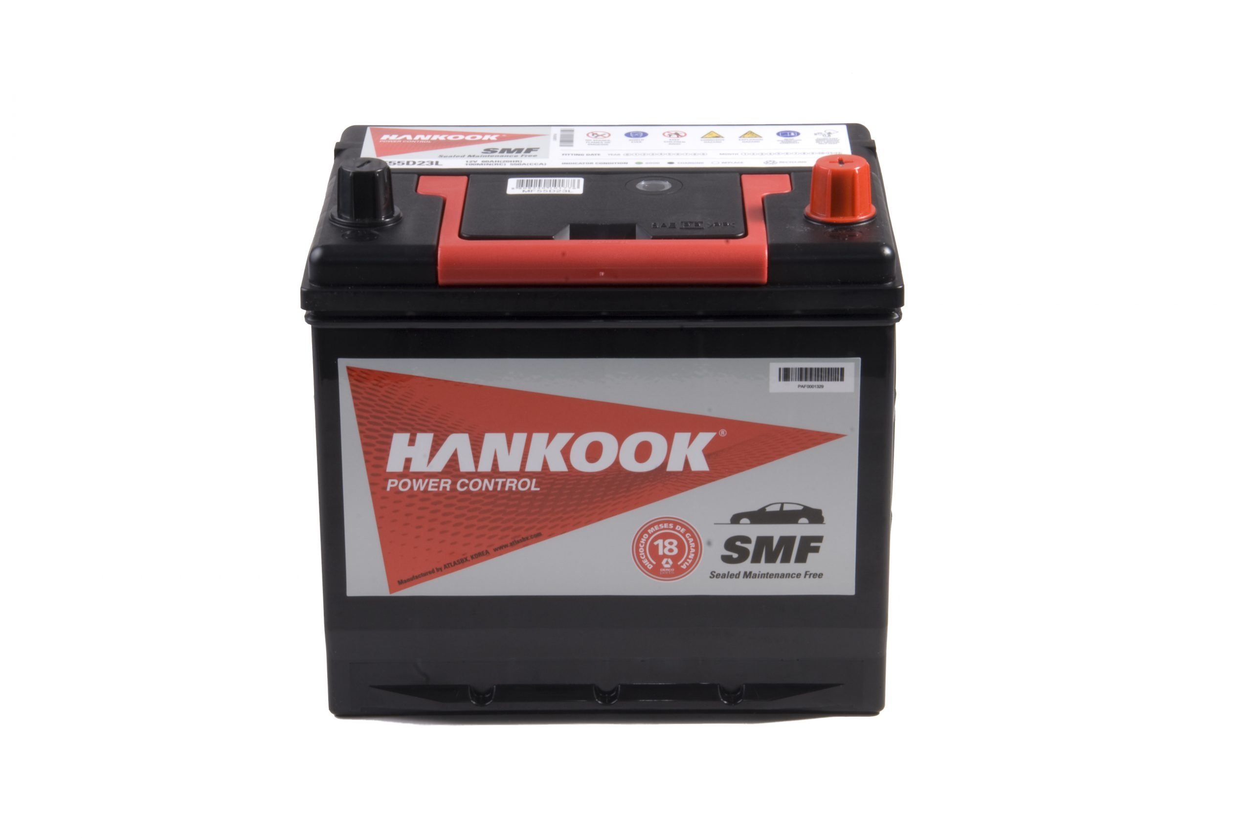 Batería Hankook tipo MF caja 35 para automóvil modelo MF55D23L 60AH 830CA. Borne positivo derecho. Peso: 15.1 kg, Dimensiones 23 × 17.2 × 22 cm, capacidad – Ampere Hora: 60, arranque en frío: 550. Tecnología X-FRAME, fabricadas con los más altos estándares de calidad ISO. Mayor tiempo de duración, para un mejor rendimiento. 100% libre de mantención. Origen: Corea, se estableció en el año 1944, distribuida en más de 130 países en todo el mundo.