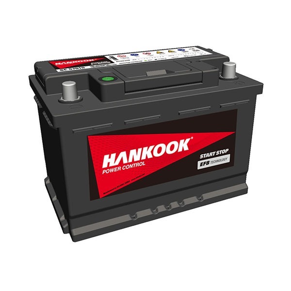 Batería Hankook tipo EFB con sistema start stop para automóvil modelo SE 57010 70AH 975CA. Borne positivo derecho. Peso: 18.8 kg, Dimensiones 27.7 × 17.4 × 19 cm, capacidad – Ampere Hora: 70, arranque en frío: 975. Tecnología X-FRAME, fabricadas con los más altos estándares de calidad ISO. Mayor tiempo de duración, para un mejor rendimiento. 100% libre de mantención. Origen: Corea, se estableció en el año 1944, distribuida en más de 130 países en todo el mundo.