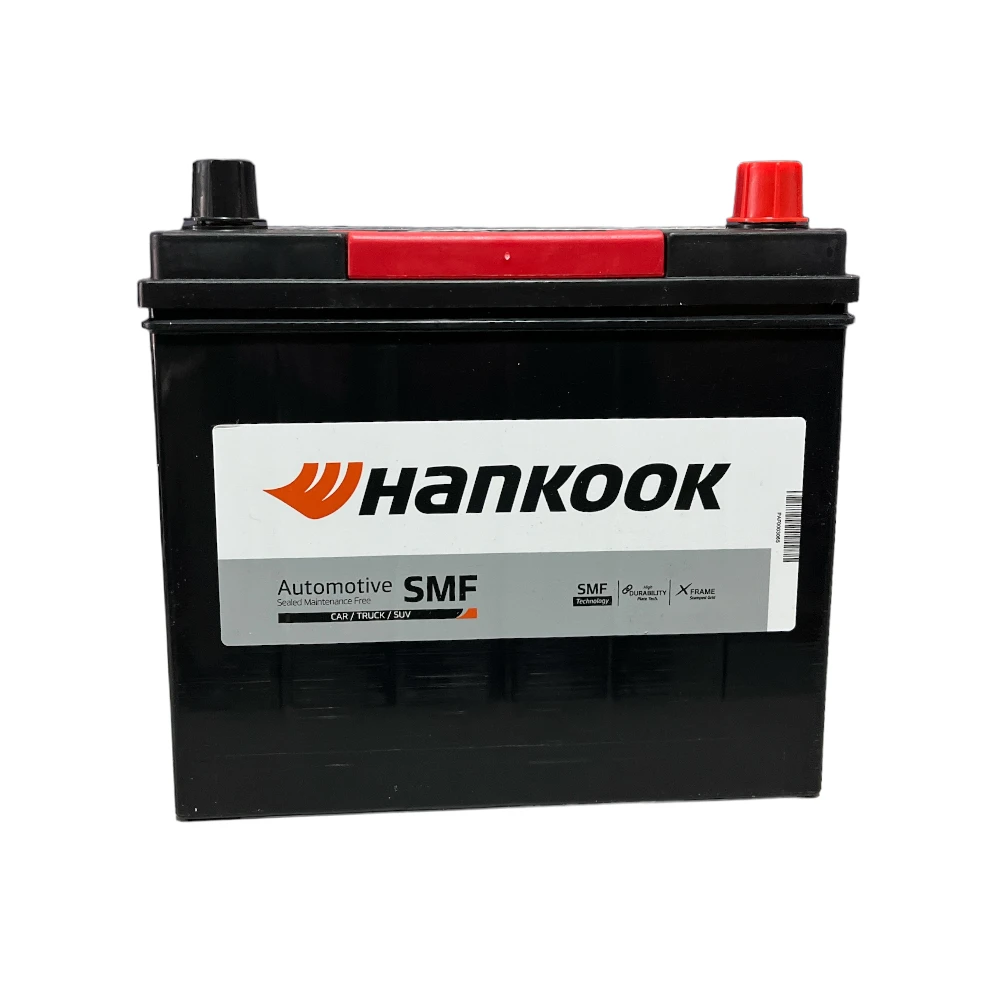 Batería Hankook tipo MF caja NS 60-650 para automóvil modelo MF55B24L 45AH 650CA. Borne positivo derecho. Peso: 11 kg, Dimensiones 23 × 12 × 22 cm, capacidad – Ampere Hora: 45, arranque en frío: 650. Tecnología X-FRAME, fabricadas con los más altos estándares de calidad ISO. Mayor tiempo de duración, para un mejor rendimiento. 100% libre de mantención. Origen: Corea, se estableció en el año 1944, distribuida en más de 130 países en todo el mundo.
