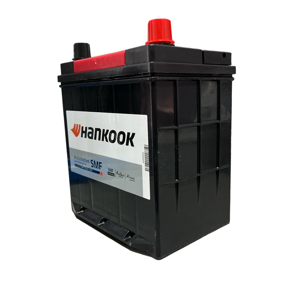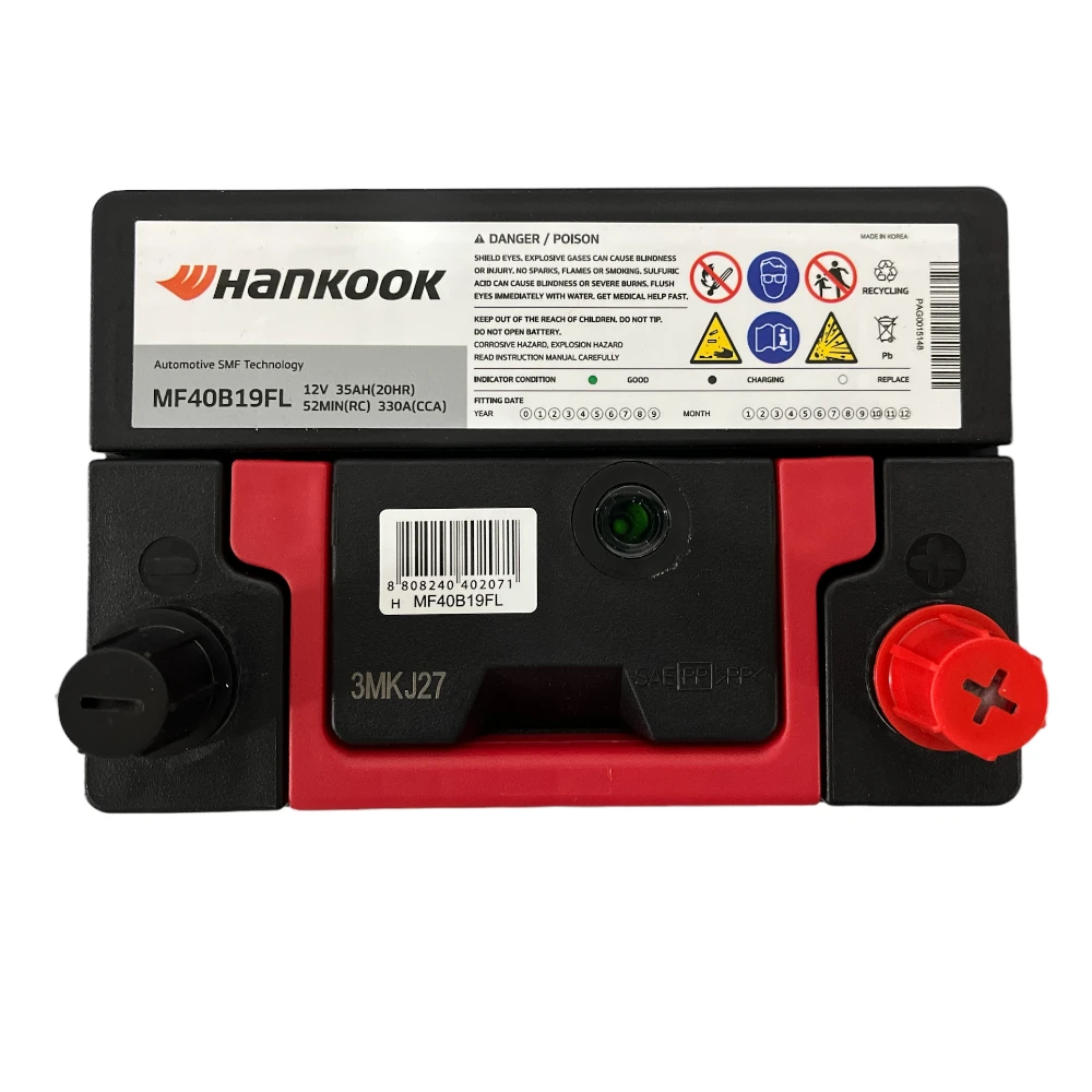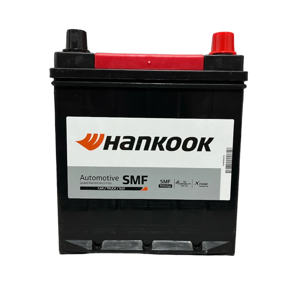 Batería Hankook tipo MF caja NS40-500 para automóvil modelo MF40B19FL 35AH 500CA. Borne positivo derecho. Peso: 9.1 kg, Dimensiones 18.7 × 12.7 × 22 cm, capacidad – Ampere Hora: 35, arranque en frío: 500. Tecnología X-FRAME, fabricadas con los más altos estándares de calidad ISO. Mayor tiempo de duración, para un mejor rendimiento. 100% libre de mantención. Origen: Corea, se estableció en el año 1944, distribuida en más de 130 países en todo el mundo.