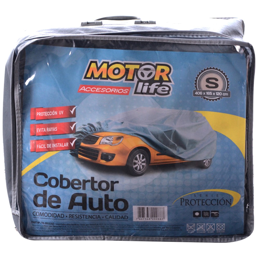 Pijama para Carro Talla S Motorlife es la forma increíble de proteger tu vehículo ante factores externo a un bajo costo. Este producto está fabricado con una fibra liviana, delgada, pero de alta resistencia que no condensará la humedad del ambiente y no perjudicará tu pintura. Su uso evita que tu auto esté expuesto a rayos UV, polvo, basura, hojas y otros factores climáticos, dándote la seguridad de dejarlo por largos o breves períodos de tiempo sin preocuparte por su apariencia. Además, protege el interior de temperaturas extremas, evitando la resequedad de los cueros, telas, gomas, plásticos y burletes. Su utilización es muy sencilla gracias a que cuenta con bordes elasticados, los que te dan un ajuste perfecto para los distintos tipos de carrocería.