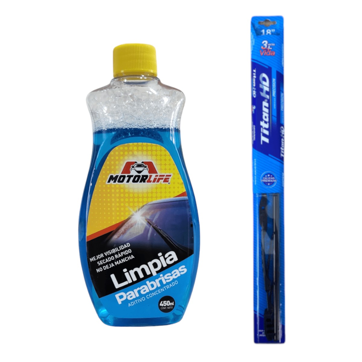 KIT LIMPIA PARABRISA PLUMILLA TITAN HD METALICA 18" + ADITIVO LIMPIAPARABRISA 450ML