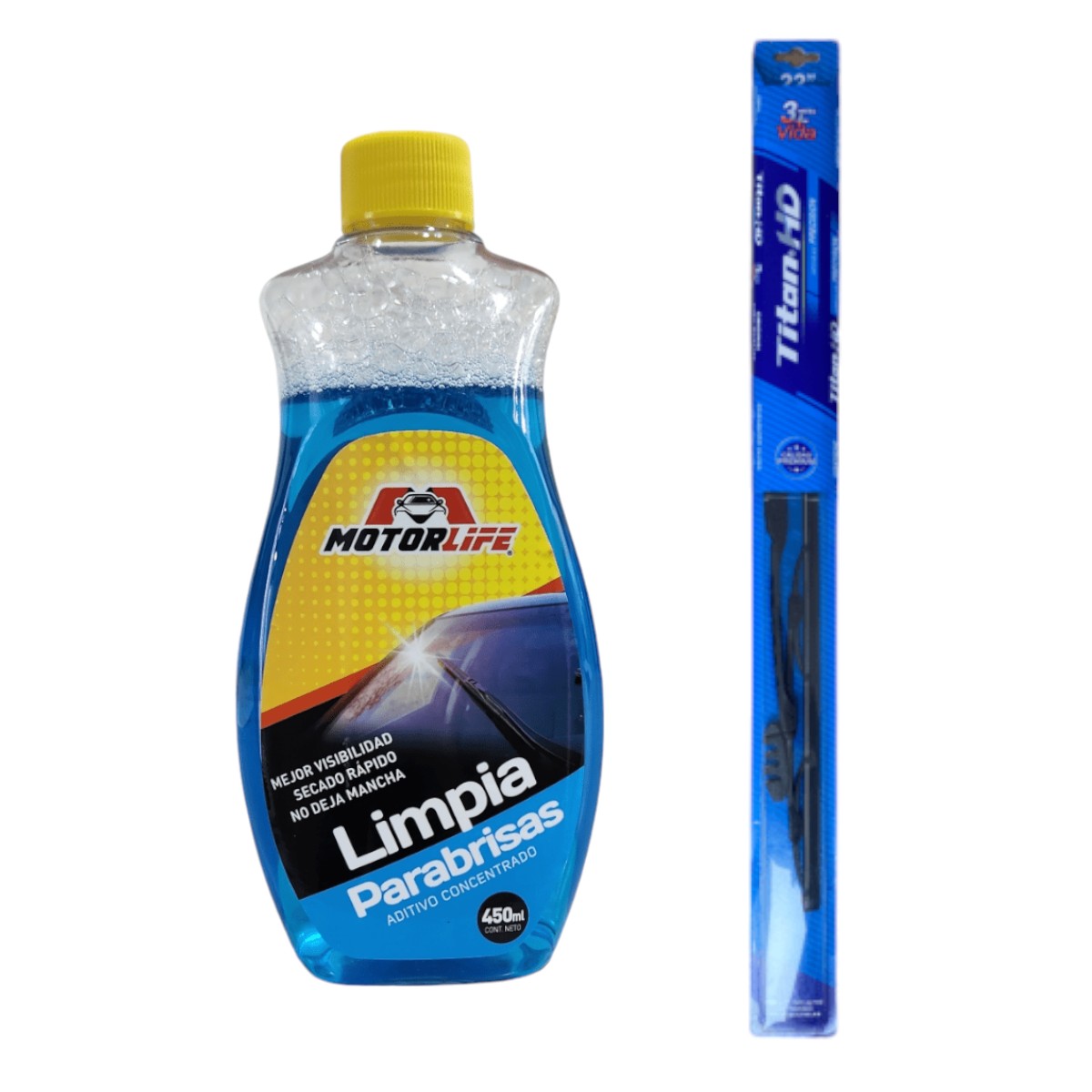 KIT LIMPIA PARABRISA PLUMILLA TITAN HD METALICA 22" + ADITIVO LIMPIAPARABRISA 450ML