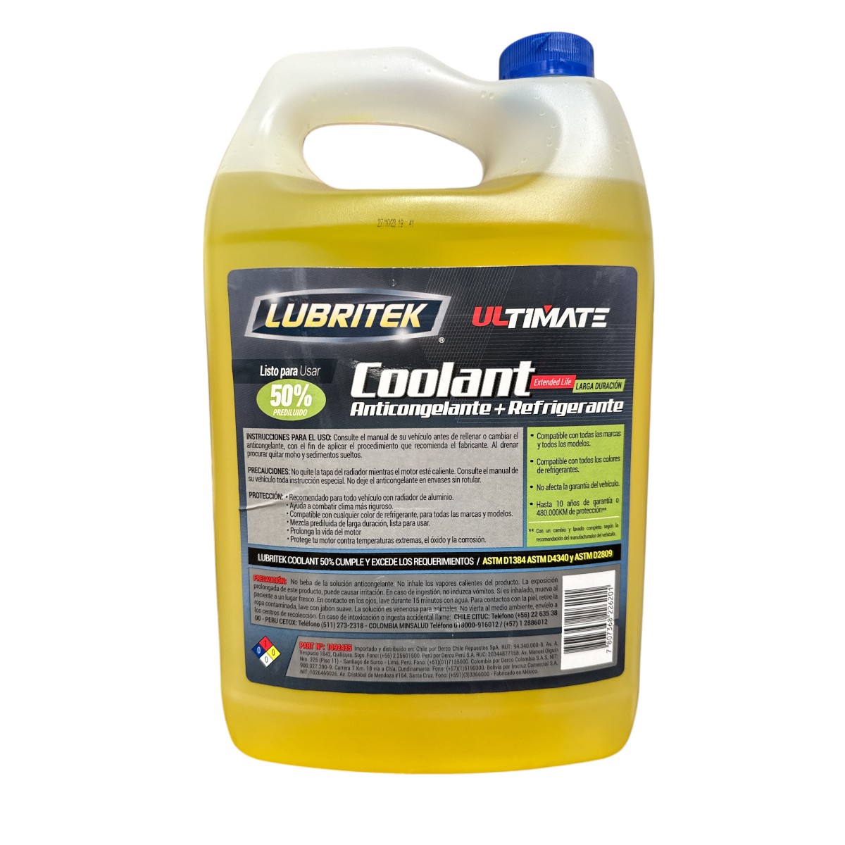 Lubritek Anticongelante & Refrigerante 50% Listo para Usar, es la manera más conveniente de rellenar el sistema de enfriamiento de su auto con la protección superior de Lubritek. El nuevo y mejorado anticongelante Lubritek de Larga Duración con Tecnología TEK COOL detiene la corrosión y ayuda a que el motor dure por más tiempo. Use Lubritek para mantener los sofisticados sistemas de enfriamiento de hoy en día, funcionando eficientemente.